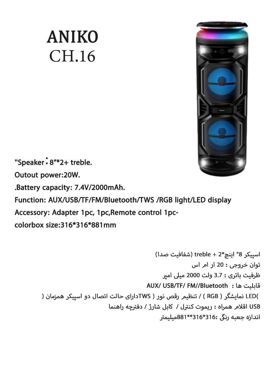 Categories: اسپیکر, اسپیکر آنیکو Aniko, اسپیکر بلوتوثی, اسپیکر چمدانی