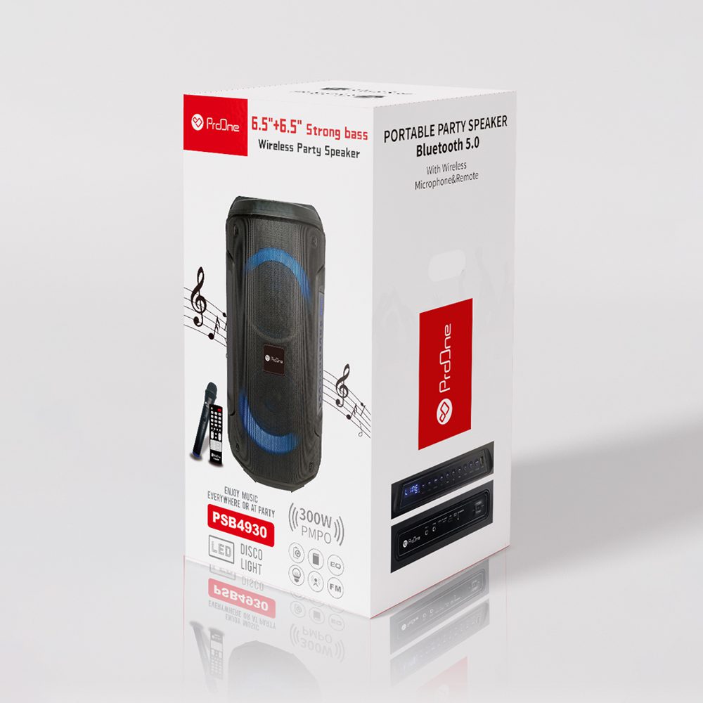- اسپیکر بلوتوث قابل حمل پرووان مدل PSB4930 تولیدی از شرکت «پرووان» است . این اسپیکر که به واسطه توان خروجی بالا؛ صدای پرقدرت و شفافی را برای برگزاری مهمانیها و مجالس ایجاد میکند. علاوه بر حجم زیاد صدای خروجی، طراحی زیبا، افکتهای متنوع نورانی و قابل حمل بودن. این محصول را به یکی از اسپیکرهای جذاب موجود در بازار تبدیل کرده است. این اسپیکر از طریق فناوری بلوتوث، پورت USB وخروجی AUX و مموری کارت به تلفنهمراه یا پخشکنندههای مختلف صوتي متصل میشود. اسپیکر پرووان PSB4930 انرژی مورد نیاز خود را از طریق یک باتری داخلی لیتیوم یونی پر قدرت با ظرفیت 5500 میلی آمپر ساعت تامین میکند که برای پخش موسیقی به مدت 1.5 ساعت جوابگو هست.