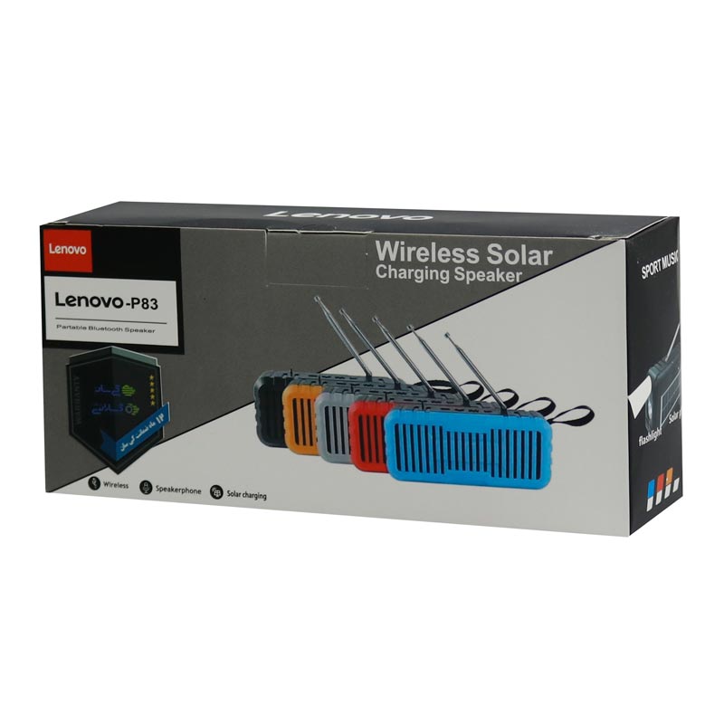 اسپیکر بلوتوث لنوو مدل P83 که از استانداردهای CE ،FCC و RoHS مربوط به سلامت و ایمنی محصول پشتیبانی می کند. قابلیت پاسخگویی تماس و برقراری مکالمه را نیز با تعبیه میکروفون داخلی دارد. اسپیکر پرتابل P-83 انرژی مورد نیاز خود را از باتری لیتیوم پلیمری به ظرفیت 1800 میلی آمپر ساعت با میزان نگهداری حدود 6 ساعت شارژ تامین می نماید. که از طریق اتصال کابل Micro USB و گذشت 2٫5 ساعت زمان، قابلیت شارژ مجدد را خواهد داشت. اتصال بی سیم و پایدار انواع گوشی موبایل، تبلت، لپ تاپ و سایر دستگاه های هوشمند به این اسپیکر نیز با بلوتوث نسخه ی 4٫2 انجام می شود. همچنین از طریق اتصال فلش مموری به پورت USB پشت بدنه یا ورود کارت حافظه MicroSD به درگاه مربوطه، دسترسی کاربران. به فایل های صوتی مختلف و لذت از پخش موسیقی های ذخیره شده فراهم شده است. علاوه بر این کاربران می توانند با امکان دریافت امواج رادیویی در بازه فرکانسی 87٫5 الی 108 مگاهرتز و استفاده از آنتن اکسترنال برنامه های مورد علاقه ی خود را در شبکه های رادیو دنبال نمایند.