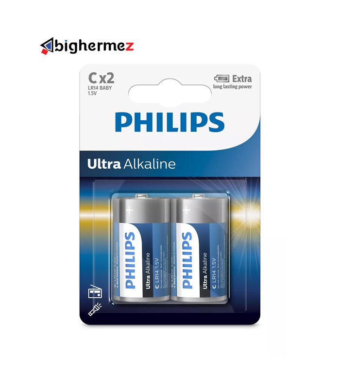 - باتری متوسط 2 عددی سایز C فیلیپس اولترا آلکالاین مدل LR14E2B/97