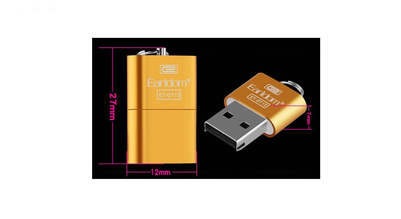 رم ریدر ET-OT12 از شرکت Earldom که در زمینه لوازم جانبی موبایل فعالیت خوب و درخشانی دارد، می باشد. بدنه فلزی این رم ریدر آن را در برابر اکثر ضربات وارده محافظت می کند. یک حلقه در انتهای درب این محصول قرار دارد. که شما می توانید با متصل کردن آن به جاسوییچی و یا کیف خود از گم شدن آن جلوگیری کنید. با استفاده از این محصول می توانید رم های میکرو اس دی خود را همیشه به صورت فلش به همراه خود داشته باشید و فایل ها را با سرعت بالا جابه جا کنید.