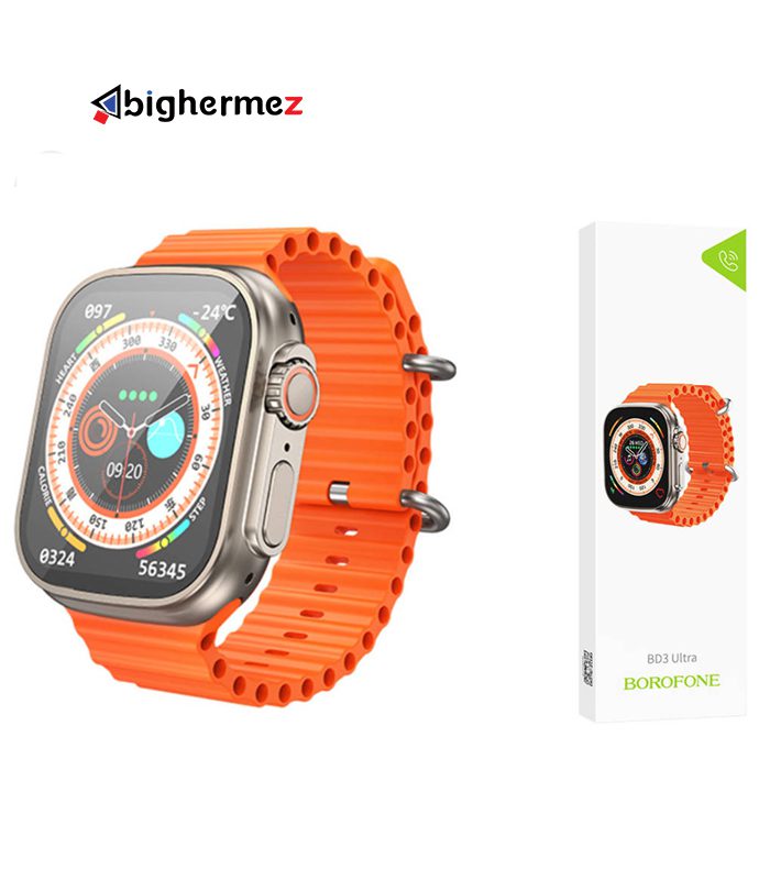ساعت هوشمند بروفون مدل BD3 Ultra یک دستگاه هوشمند پیشرفته است. که با امکانات و قابلیتهای متنوعی ارائه میشود. این ساعت هوشمند دارای صفحه نمایش 1.96 اینچ است که به شما تجربه بزرگتری در مشاهده محتوا و کنترل دستگاه را میدهد. این صفحه نمایش دارای تکنولوژی لمسی و TFT است که کیفیت تصویر و واکنش سریع را به شما ارائه میدهد. ساعت هوشمند BD3 ULTRA در دو رنگ مشکی با بدنه مشکی و رنگ نارنجی با بدنه سیلور در دسترس است که به شما انتخابی شیک و جذاب میدهد.