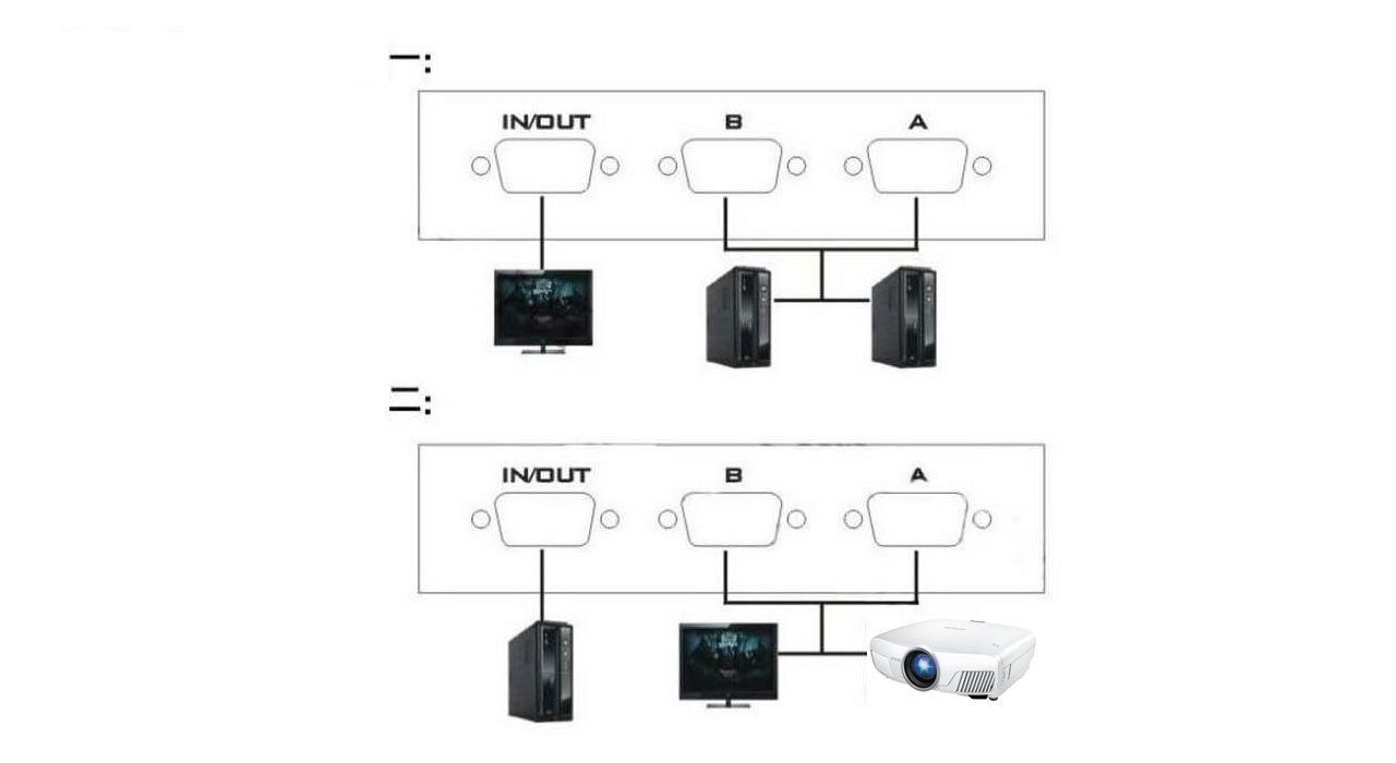 با استفاده از یک سوئیچ VGA می توانید به راحتی دو یا چند تصویر را بر روی مانیتور ببینید و با چند کلید ساده تصاویر را جابجا کنید.