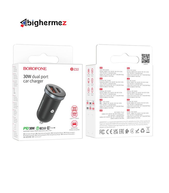شارژر فندکی 30W بروفون مدل BZ22 PD+QC3.0