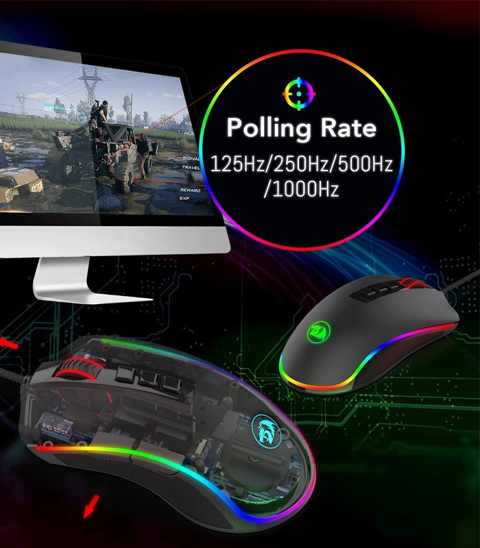 موس مخصوص بازی مدل REDRAGON M711 محصولی حرفهای از برند « ردراگون » (Redragon) است که برای کاربران علاقهمند به بازی طراحی و تولید شده است. در واقع این ماوس مشخصاتی دارد که آن را برای بازی کردن ایده ال میکند. از فاکتورهای خریدهای بسیار مهم هنگام تهیه ماوسهای گیمینگ میزان دقت و قابلیت کنترل دقت در آنها است. اگر شما به صورت حرفهای بازی میکنید یا قصد دارید یک گیمر حرفهای باشید باید از لوازم مخصوص بازی استفاده کنید. ماوس و کیبورد مهمترین ابزار یک گیمر محسوب میشود. ماوس و کیبورهای بازی علاوه بر ظاهر در عملکرد و کیفیت هم با ماوس و کیبورد ساده تفاوتهای زیادی دارند. شما میتوانید از ماوس بازی برای کاربریهای روزمره استفاده کنید اما استفاده از ماوس عادی برای بازی کار عاقلانهای نیست. یکی از برندهایی که در زمینه تولید ماوس برای بازی فعالیت دارد، ردراگون است. ماوس مخصوص بازی مدل M711 یکی از محصولات این برند معتبر است. موس مخصوص بازی مدل REDRAGON M711. اولین نکته و تفاوتی که ماوس بازی با ماوس ساده داشته ظاهر آن است. این مدل هم ظاهری متفاوت با ماوسهای ساده دارد. برای طراحی این ماوس از طراحی مدرن و خطهای شکسته نامتقارن استفاده شده است. ردراگون تلاش کرده تا علاوه بر ظاهر جذاب، استفاده از ماوس هم برای گیمر آسان باشد. همین باعث شده تا نحوه قرارگیری کلیدها و شکل کلی ماوس برای یک گیمر استاندارد است. شاید در نگاه اول تصور کنید استفاده از این طرحها برای زیبایی بیشتر باشد اما اینطور نیست. گیمرها ساعتها مشغول بازی کردن هستند و استرس و هیجان زیاد باعث عرق کردن دست میشود. هنگامی که دست عرق کند استفاده از ماوس سخت شده و میتواند تاثیر بسیاری روی بازی داشته باشد. ردراگون برای مدل M711 از سیم به طول 1.8 متر استفاده کرده است. اگر گیمر حرفهای باشید حتما میدانید استفاده از سیم بسیار بهتر از ماوس بیسیم بوده یکی از دلایل آن نبود تاخیر است. اتصال بیسیم در بهترین حالت هم در اجرای دستور تاخیر دارد. شاید در حالت عادی این تاخیر بسیار نامحسوس باشد اما برای یک گیمر حرفهای حتی چند صدم ثانیه هم اهمیت دارد. برای اتصال این ماوس از پورت USB استفاده شده است. برخلاف ماوسهای قدیمی که پورت پی اس/2 داشتند امروزه تمامی لوازم گیمرها به USB مجهز شده اند. . طول کابل این مدل 1.8 متر است