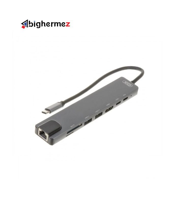 مبدل TYPE-C به PD100W+USB-C+HDMI+USB2+SD&TF+RJ45 ایکس او مدل XO-HUB003