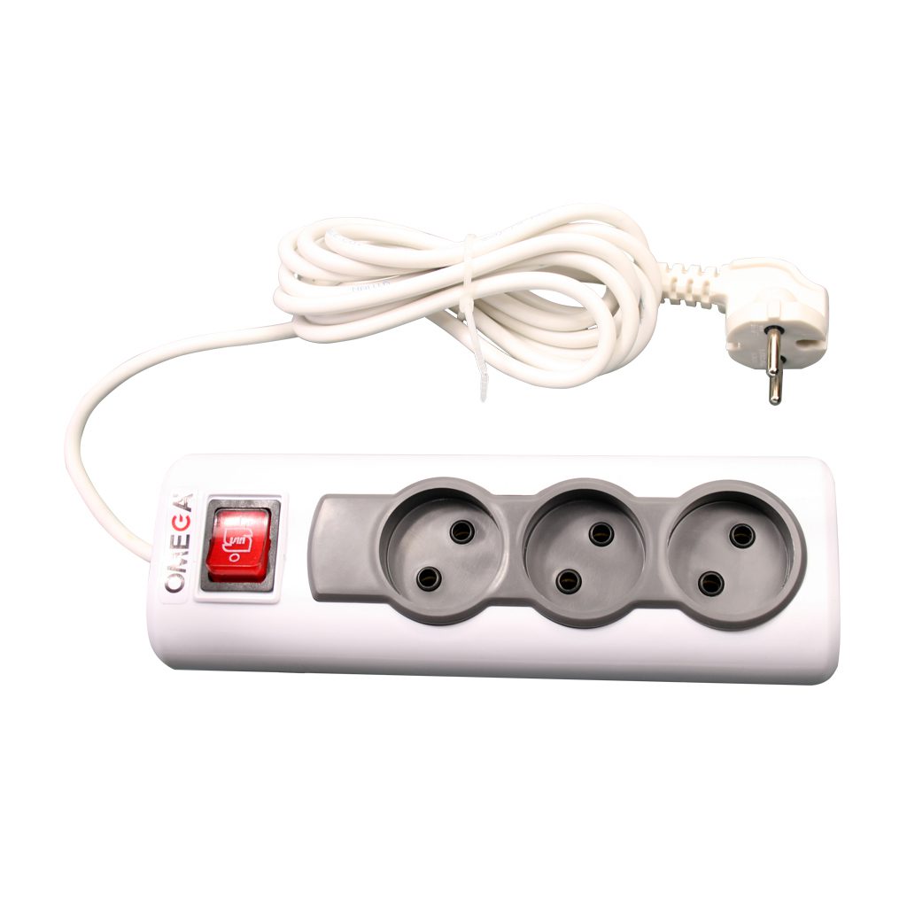 • اگر به دنبال یک چند راهی برق مناسب با تعداد 3 پریز برق هستید. پیشنهاد ما به شما چند راهی برق امگا ( Omega ) مدل R3000 است. این چند راهی از طول مناسب 1.5 متر بهره می برد. این محصول دارای سه پریز برق است و به دکمه روشن / خاموش تجهیز شده است. حداکثر ولتاژ برای قطع شدن جریان آن 250 ولت است و از بیشینه جریان انتقالی 10 آمپر بهره می برد. شما می توانید از این چند راهی برق باکیفیت امگا برای کامپیوتر، موبایل، تلویزیون، وسایل صوتی و تصویری، یخچال و فریزر، دستگاه های دیجیتال و سایر لوازم خانگی استفاده کنید. چند راهی برق امگا مدل R3000 به طول 1.5 متر دارای نشان استاندارد نیز است.