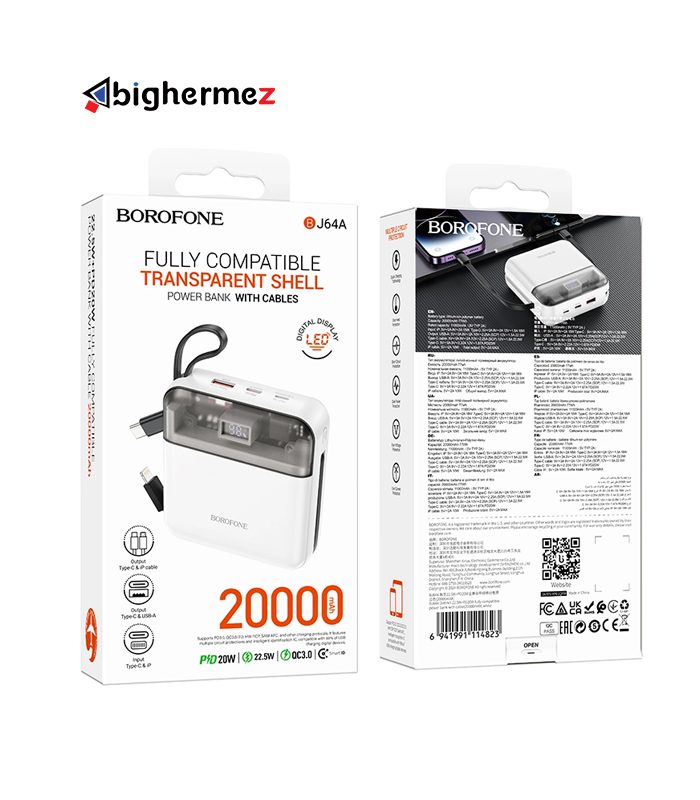 پاوربانک 20000mAh برند بروفون مدل BJ64A 22.5W