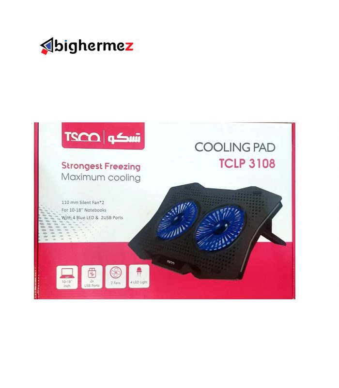 پایه نگهدارنده لپ تاپ تسکو مدل TCLP 3108 از دو فن بزرگ با ابعاد 110 در 110 در 15 میلی متر بهره مند بوده