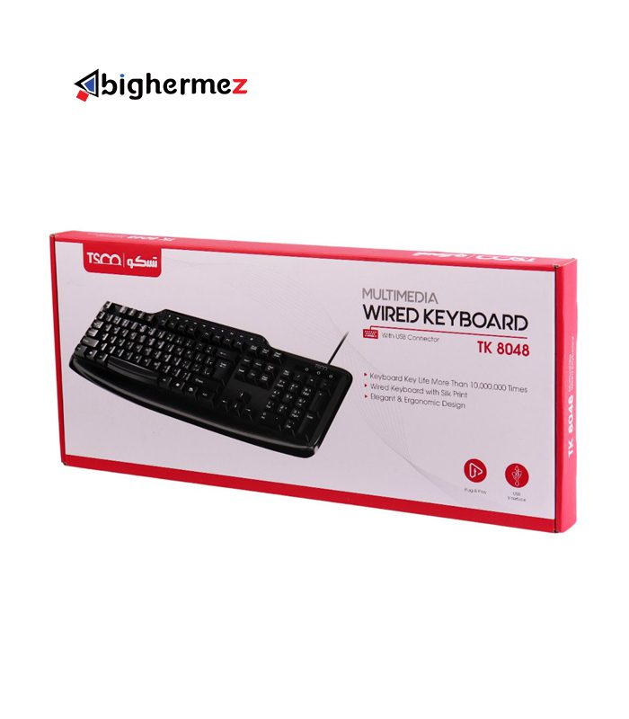 کیبورد TK 8048 از نوع چندرسانهای بوده و با تمرکز بر عملکردهای متنوع و کاربری آسان طراحی شده است. این کیبورد به واسطه اتصال سیمی USB، یک ارتباط پایدار و سریع را برای کاربران فراهم میکند. این کیبورد دارای 114 کلید است که شامل 104 کلید استاندارد و 10 کلید میانبر چندرسانهای میشود. کلیدهای میانبر به کاربر امکان دسترسی سریع به عملکردهایی نظیر تنظیم صدا، پخش و توقف موسیقی، تغییر آهنگ، و باز کردن برنامههای کاربردی را میدهند. کیبورد TK 8048 به سوئیچهای غشایی (Membrane Switch) مجهز شده است که به دلیل عملکرد نرم و بیصدا، محبوبیت بالایی در میان کاربران عمومی و اداری دارند. طول کابل این کیبورد 1.8 متر است که آزادی عمل کافی را به کاربر میدهد. این طول برای استفاده در میزهای کاری بزرگ و یا حتی اتصال به دستگاههایی که فاصله بیشتری دارند، ایدهآل است. یکی از ویژگیهای مهم کیبورد TK 8048، مقاومت آن در برابر گرد و غبار است. این قابلیت باعث میشود که کیبورد در محیطهای مختلف، از جمله مکانهای پر گردوغبار، عملکرد مطلوب خود را حفظ کند. کیبورد TK 8048 با طراحی ساده و کاربردی، تجربهای راحت و بیدغدغه را برای کاربر فراهم میکند. ارتفاع کلیدها بهگونهای تنظیم شده که فشار کمتری بر انگشتان وارد شود و فاصله مناسب بین کلیدها تایپ سریع و بدون اشتباه را تضمین میکند. کلیدهای کیبورد TK 8048 از نوع مات بوده و سطح آنها بهگونهای طراحی شده که انگشتان به راحتی روی آنها قرار بگیرند و از لغزش جلوگیری شود. علاوه بر مقاومت در برابر گردوغبار، کیبورد TK 8048 در برابر ساییدگی ناشی از استفاده مداوم نیز مقاوم است. بدنه کیبورد از پلاستیک فشرده و مقاوم ساخته شده است که در برابر ضربه و خطوخش مقاومت بالایی دارد. این متریال علاوه بر دوام، ظاهر زیبا و حرفهای نیز به محصول بخشیده است. طراحی مات بدنه باعث میشود که اثر انگشت و لکهها روی آن باقی نمانند و ظاهر کیبورد همیشه تمیز به نظر برسد. ظاهر کلاسیک و مینیمالیستی کیبورد TK 8048 آن را به گزینهای مناسب برای استفاده در محیطهای مختلف تبدیل کرده است. این کیبورد به راحتی با دکوراسیونهای رسمی و مدرن سازگار میشود و ظاهری حرفهای به میز کار میبخشد.