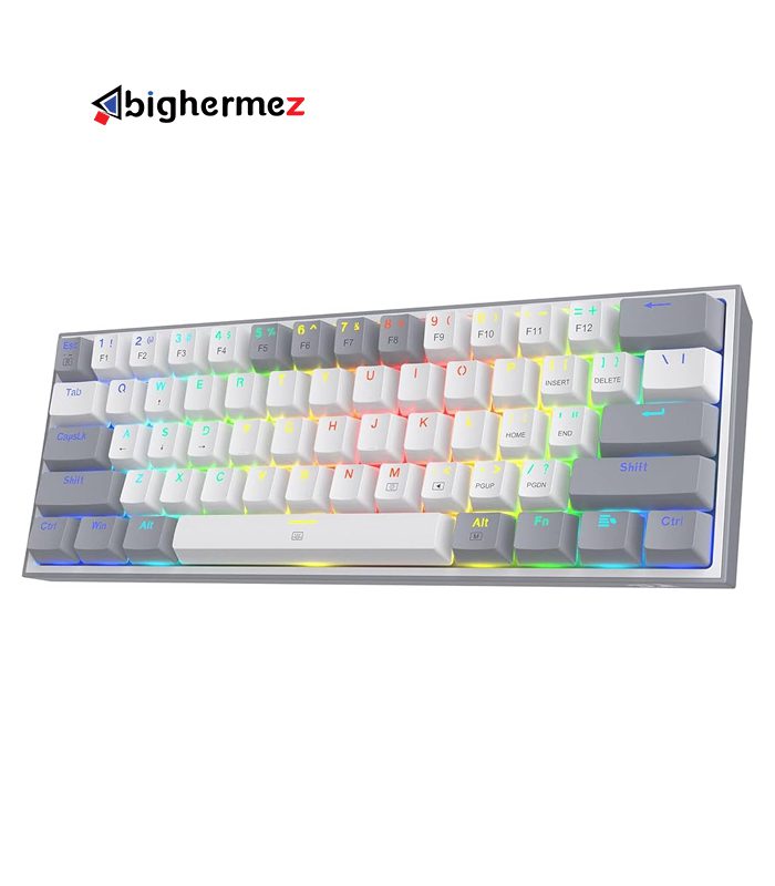 صفحهکلید Redragon K617 یک کیبورد زیبا و کاربردی و به صرفه است که با سیم و کابل تایپ C متصل می شود. 61 کلید فوقالعاده فشرده و جمع و جور و با حداقل اشغال فضا یک میز مرتب را به شما می بخشد. حداکثر 20 حالت از پیش تعیین شده نور پس زمینه توسط خود صفحه کلید قابل تنظیم می شود. روشنایی و سرعت نورها نیز توسط خود صفحه کلید قابل تنظیم است. فقط کافی است که حالت بازی خود را انتخاب کنید تا از هماهنگی نورها در هنگام بازی لذت ببرید.