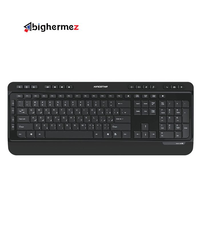 - کیبورد بیسیم کینگ استار مدل KB97W، بدون سیم و اتصال آن از نوع دانگل USB (2.4 گیگاهرتز) میباشد. این کیبورد دارای 124 کلید برای انجام فعالیتهای کامپیوتری است. همچنین کیبورد kb97w دارای 17 کلید میانبر به منظور انجام سریعتر کارهاست که عبارتند از Prev. Page, Next Page, Web Home, email, Search, Refresh, Setting, Play/Pause, Prev. Track, Next Track, Stop, Volume, Mute, Music, Sleep, Awake, Power. کیبورد کینگ استار مدل kb97w برای استفادههای روزمره مناسب میباشد و دارای محدوده عملیاتی 10 متر است. از دیگر ویژگیهای این کیبورد محصول کمپانی کینگ استار، طراحی کلیدها به گونهای که امکان تایپ کردن در مدت زمانی طولانی را فراهم می کند، دسترسی راحت به تمامی کلید های کاربردی، طراحی نرم و سایلنت کلید ها، با دوام و دارای کلید های مات میباشد.